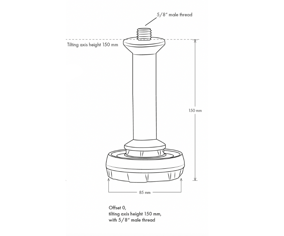 • Tilting axis height: 150 mm with 5/8“ male thread