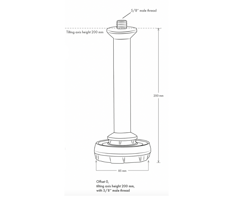 • Tilting axis height: 200 mm with 5/8“ male thread